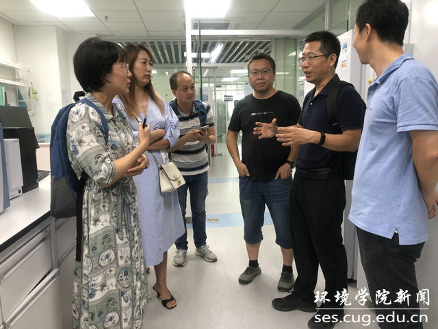 一行参观了江汉大学环境与健康研究院痕量元素分析室、新型有机污染物检测实验室、二恶英分析实验室和环境毒理学实验室等,重点参观了江汉大学环境检测中心,并与检测中心的王璞主任等相关教师就大型仪器的维护、实验室建设与管理、实验室安全以及大型仪器设备共享等方面的问题进行了深入的交流和讨论。