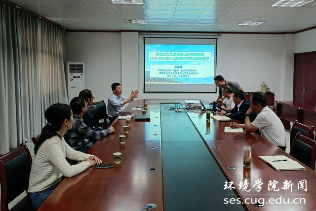教学团队与神农架国家公园管理局总工程师郑成林、科研院院长杨敬元、副院长张志麒等进行座谈,双方就湿地生态系统科学研究、项目申报与人才培养等领域深度合作进行深入交流。葛继稳教授回顾生物系与国家公园的合作历程,介绍五年来大九湖湿地碳通量监测的成果,提议双方依据“碳达峰、碳中和”的国家政策合作开展大九湖湿地碳交易l的科学探索。顾延生教授介绍十年来生物系等团队在大九湖湿地开展的系列科研工作和积累的众多前沿科研成果。公园管理局对地大在大九湖的多年扎实工作和为国家公园科研发展提供的支撑表示感谢,期待双方继续在多个领域加强合作。双方约定在原合作协议的基础上拟定新的框架协议,为后期深度合作奠定基础。