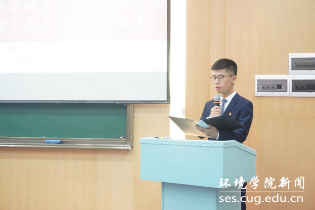 学院党委书记李素矿总结讲话。他代表学院党委和行政向大会的顺利召开表示祝贺,感谢第四届学生委员会做出的努力与贡献。他说,当前学院正处于“三全育人”综合改革试点工作推进的关键期、发展的黄金期,学生会积极作为,主动融入学院中心工作,不断强化自身“三性”建设,带领同学们为学院发展注入了活力、作出了贡献。他指出,第五次学生代表大会是同学们在校学习生活的一件大事,是一次民主参与的政治实践,大会代表们要高度重视、履职尽责。他对学生会今后的工作提出四点希望:一是要守初心,紧扣“思想引领、成长服务”两大职能定位,引导广大同学争做政治强、本领高、作风硬、敢担当的生态环保铁军;二是要担使命,瞄准同学们的真实需求,强特色、入主流,帮助每位同学健康成长成才,大力营造爱党、爱国、爱家、爱校、爱学、爱习的良好氛围,引导广大同学做到价值取向与党与祖国人民同心、学术方向与政治方向同向、学术卓越与思想卓越同行、学识魅力与人格魅力同在;三是要找差距,坚持问题导向谋发展,查找自身问题,想办法破解难题,增强广大同学在“第二课堂”中的幸福感和获得感;四是要抓落实,树立“青春是用来奋斗的”“从同学中来,到同学中去”的工作理念,善于学习、创新发展,将工作深入到广大同学学习、生活中的点点滴滴。他希望,新一届的学生委员会和学生会主席团不断增强“四个意识”,坚定“四个自信”,做到“两个维护”,以新姿态、新朝气,握好接力棒,跑出好成绩。